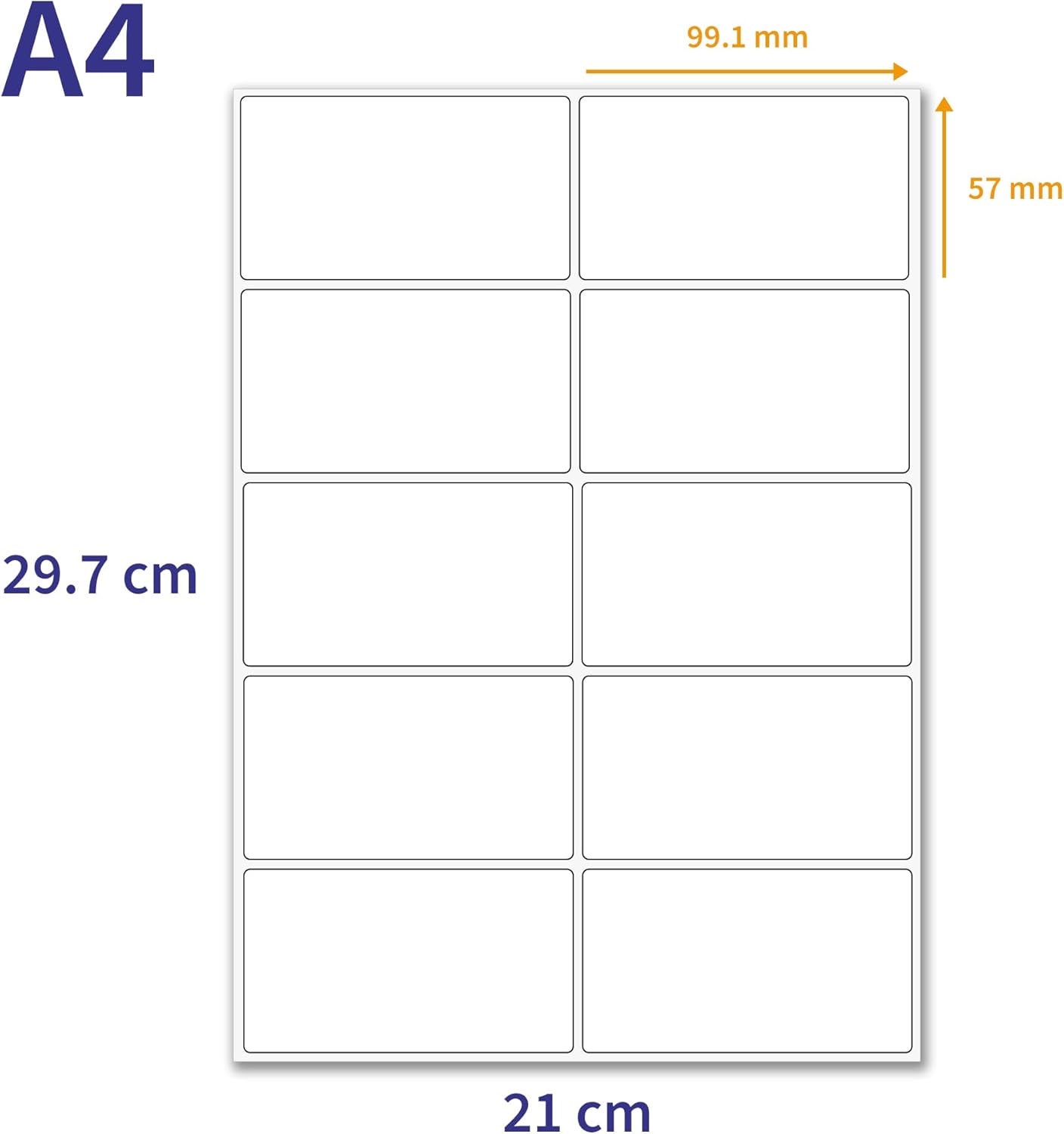 CONVENIENT LABEL DIMENSIONS: Each label measures 99.1 x 57 millimetres, providing ample space for addresses, barcodes, product information, or custom designs